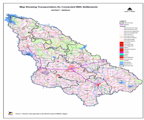 The Government of Maharashtra, Planning Department has resolved to make GIS an integral Part of planning Process and Wardha district has initiated to implement “GIS Based Decision Support System for Wardha District” as pilot project under the Innovative Schemes of the District Planning Committee Funds as a district level innovation. As a part of initiatives towards implementing E-Governance in the Wardha District and has been entrusted to carry out Geo-Spatial based application to introduce graphical interface through use of Geo-referenced maps of Wardha District. This has the objective to planning and monitoring the District for any development work and environmental aspect too.
